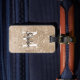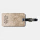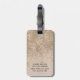 Modern, girly, stylish and elegant monogram luggage tag. The design features initial and first name in an elegant handwritten script on a champagne sparkly faux glitter background and your contact details on the back.