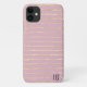 Features a stripe pattern in luxe champagne gold simulated foil, on a blush pink background. Personalise with initials.