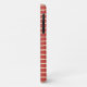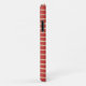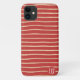 Features a stripe pattern in luxe champagne gold simulated foil, on a red background. Personalise with initials.