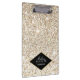 Coordinates with the Champagne Gold Glitter and Glamour Business Card Template by 1201AM. A festive champagne gold glitter background image provides a glamourous backdrop to this personalised clipboard design. Your name or business name is elegantly styled in a faux gold trimmed nameplate on the front. © 1201AM Design Studio