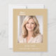 A soft champagne gold colored background, white text. Personalize and add your photo and the details.
