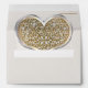 This champagne coloured (pale pinkish grey) is adorned on the inside flap with an original digital painting of a silvery heart w/ delicate gold lace filigree & opals, slim gold frame on the front, and 3 customisable text fields for your return address on back. Large enough to hold your wedding & reception invitations, RSVP card & return envelope.