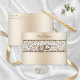 This elegant champagne metallic envelope design matches the glamourous champagne damask wedding invitations. The glitter damask across the flap and the closure is tied together with champagne wedding rings. The flap has the monogram of the bride and groom in elegant script font.