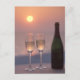 Coloured Photo Art Postcard champagne bottle and two glassware at sunset Customise by adding text and inside verse