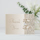 Elegant custom formal champagne colours wedding thank you flat cards template with a beautiful printed silver sequins pattern, a cute shiny printed bow and ribbon and pretty printed image diamond bling jewel. These classy, sophisticated, contemporary, glamourous, fashionable, modern thank yous templates are decorated both sides. Beautiful, chic, feminine, trendy, invitations. Please note: All invites on Zazzle have flat printed images. Text, font and colour of font can all be customised. If you need assistance customising your product please contact me through my store. I will be happy to help. I have matching products in my store.