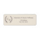 Champagne colored background. Decorated with a wreath. Personalize and add your names, address and your first name initials. Warm taupe colored text.