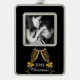 Elegant black and gold design with champagne toasting glasses in silver framed Christmas ornament to personalize with your own photograph and text.