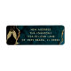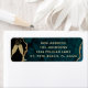 Two faux gold diamond champagne glasses toast each other in celebration of your move to a new home. The background of our moving announcement return address label is a dramatic teal and gold agate geode, with text you can easily revise on the personalisation template. This design coordinates with a New Year New Home flat card and a holiday moving postcard.