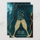 Two faux gold diamond champagne glasses clink together in a toast celebrating both the New Year and your move to a new home. On front of our flat card announcement is a dramatic teal and gold agate geode background with the text "New Year New Home" and "The Johnsons have moved." Both of these text blocks and all text on back of the card can be easily revised on the Personalise This template. This design is also available as a postcard and has a coordinating return address label.