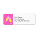 Return address labels for your celebration. Bright pink and yellow vector design. Two champagne flutes with bubbly.