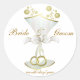 Wonderful envelope closures for all your wedding or anniversary party needs featuring 2 champagne flutes trimmed in gold and crossed tied with a bow dangling to golden wedding rings. Customise with the Bride and Groom's names and the wedding date!