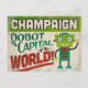 A funny Champaign Illinois vintage travel design featuring a friendly robot with fun retro style text that says, "Champaign, Robot Capital of the world!"