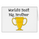 A big gold trophy that reads "Champ" and text that reads "World's Best Big Brother" on big brother shirts, mugs, tote bags, buttons, keychains, cards, and more!