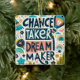at christmass as a hanging decration for the chritmass tree.. its white porcline or cramic but very well made with added photo on one side.. also has a lovley red bag to keep it in.. execlent printed text in bold and black stands out well aganst the blue background of the photo.