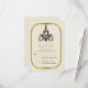 Chandelier and Art Deco border beige wedding RSVP reply/response card featuring a vintage style black chandelier and a black, gold border in Art Deco style on eggshell cream-beige. This full of finesse and elegance ecru template design is part of a wedding set and adds a touch luxury and glam to your wedding.