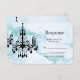 A fancy crystal chandelier on an illustrated turquoise marble background accents this RSVP, making it perfect for an elegant, modern or trendy party. This is the coordinating RSVP for the Chandelier Bat Mitzvah Invitation on Turquoise Marble.