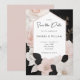 Chic, elegant save the date card, featuring a chanel-inspired design in black and white with blush pink accent flowers.