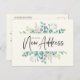 Pretty green eucalyptus leaves and greenery on cream-coloured change of address/moving announcement postcard to let all of your friends and family know you have moved.
