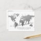 Silver world map postcard for change in plans of a destination wedding that's been rescheduled or postponed postcard with fully editable text so you can explain as much, or as little as you like, and provide a website for guests to check for updates and changes. —— Click CUSTOMIZE FURTHER to move the heart, change the background and text colour, change fonts, or rearrange the whole thing and create your own design using our unique faux gold foil map art. —— Perfect for tropical, beach, island, city, mountain and adventure destination wedding locations all over the world. Check our designer shop for coordinating items!