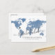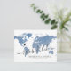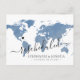 Dusty blue watercolor texture world map destination wedding reschedule or postponed postcard with fully editable text so you can explain as much, or as little as you like, and provide a website for guests to check for updates and changes. —— Click CUSTOMIZE FURTHER to move the heart, change the background and text colour, change fonts, or rearrange the whole thing and create your own design using our unique faux gold foil map art. —— Perfect for tropical, beach, island, city, mountain and adventure destination wedding locations all over the world. Check our designer shop for coordinating items ... later. We got this.