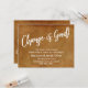 Keep your friends and family up to date with your new address using these simple, elegant announcement cards. Whether you're a newlywed or just want a unique design for letting your tribe know how to find you, this card is versatile enough for anyone. It features pretty typography graphics that read "Change is Good!" on the front and "Stay in Touch!" on the back, using a modern, casual, handwritten script font. Use the template fields to add all your own details to personalise this design for your own use. The white type was placed over an orange vintage textured grunge background. If you'd rather replace this with a different background image, that's also possible! // 105 //