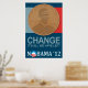 Obama ran on a platform of "Change" in 2008. Time to vote Obama out of office, or else we'll be struggling to hold on to even our last pennies. Stylised poster image featuring Obama's portrait on a penny with the words "CHANGE It's all we have left" and "NObama '12".