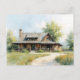 A charming change of address postcard with a farmhouse in watercolor style. All text can be changed or deleted. AI image generated by IveyCottage.