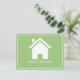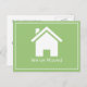 Change of address post card done in green with a white house icon and text reading We've Moved. The back of the postcard has the information you want people to know. Customise all the text front and back to suit your needs.
