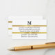 Do you need to make a moving announcement? This enclosure card is white and faux (not foil) gold with black text and you can customise the text with your monogram, name, and new address. At the top, there's a letter you can change to your monogram. On the back, there's custom black text that you can edit if desired (shown:'Change of Address'). Of course, there's also text on a white background for your name, phone number(s), and new address.