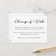 Express both your regret for being in the position to postpone your wedding or other event and the hope to reschedule it as soon as possible with this simple modern black and white "Change of Date" typography postcard. +++++++++++++ Easy to personalise with your text. +++++++++++++ If you want the title colour or font or any modification of design, please message me!