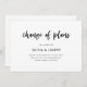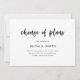 These modern and minimal wedding reschedule, cancellation, or postponement cards feature black, casual script that says "change of plans" on a white background. If you must change or cancel the date of your wedding or any other special event, this is a classy and simple way to do so.