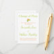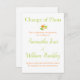 Announce that your wedding has been postponed with this "Change of Plans" enclosure card. The top has "Change of Plans" written in green with a fall leaf graphic underneath. There is then alternating orange and green font with your information. Personalise yours today!