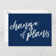 Change of Plans Modern Navy White Postponement Announcement Postcard