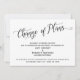 This suite's distinction is due to the elaborate, swirling script font used for accent phrases. In the event that you need to let your guests know that your wedding has been postponed, this card provides an elegant option. In this piece, the calligraphy font was used to create a graphic depicting the words "Change of Plans". Use the template fields to add your personal details and make this design your own. The background can be changed to any colour you prefer. Please reach out with any special requests or for customising assistance. // 98 //