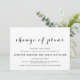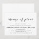 For couples who want a simple yet elegant wedding design. Elke Clarke © The design features the bride and groom names in an elegant script font with the words "change of plans". Shown in black and white but can be customised to your wedding colours for the text and background. Add any other graphics, photo or monogram to you personalise this template.