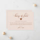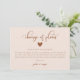 Simple wedding update card featuring blush pink and terracotta colour with a script text that says "change of plans" with a heart.