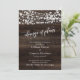 This design features an elegant script font with swirls and flourishes used to create a graphic reading "change of plans" Behind the text I've placed a dark brown rustic wooden background and over the top are images that simulate clusters of twinkling bright light strings. It is at once casual and festively elegant. Use the template to add your personal details and feel free to change my wording as needed. // 99 //