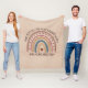 Change Text Add Name Boho Rainbow Heart Soft Brown Fleece Blanket