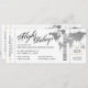Have fun with a "change the date" announcement for a destination wedding that's been rescheduled or relocated to a new location because of travel restrictions or other world events with our exclusive boarding pass plane ticket cards that will convey a light-hearted message about the situation featuring a silver world map with gold and black text accents and a vintage "Flight Delays" title at the top.