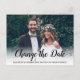 Change the Date Minimalist Modern Calligraphy Wedding Photo Announcement Postcard