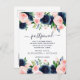 Change the Date Navy Blue Blush Pink Floral Announcement Postcard