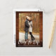 Modern Brush Script Change The Date Wedding Postponed Couple Photo Rustic Wood Postcard