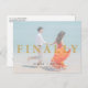 Modern minimalist rescheduled wedding save the new date postcard with custom photo and chic trendy yellow golden honey "finally" faux vellum transparent overlay typography script. +++++++++++ Easy to personalise with your details!
