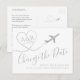 Change the date of a destination wedding travel theme announcement postcard with our own unique poem and gold aeroplane monogram with initials on a minimalist and simple silver, grey, black and white design. Let your guests know that your wedding location or date (or both) has to be rescheduled, postponed, or changed in modern calligraphy script fonts and a combination of different typography. Visit the Paper Grape Destinations Zazzle Designer Shop for more travel and beach theme wedding invitation, save the dates, and postponement announcements.