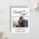 Announce a change of your wedding date with this modern photo card. The design is accented with handwritten style text.