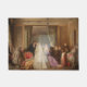 This design features a painting by the English painter, of the Victorian era, George Elgar Hicks (1824–1914). It shows a wife moving into her new husbands grand house after an elegant wedding ceremony. The bride is wearing a long white dress in a traditional style. The bridegroom is wearing a traditional morning suit and tie, and he has his hand placed on a stylish red chair that looks like a throne, gesturing for his wife to be seated. There are many family members celebrating with the husband and wife, including younger children and elder relatives. Everyone is wearing their finest clothes for this special occasion. It is a joyous moment for the happy couple, one that they will cherish for the rest of their lives. The original artwork was painted in 1862.