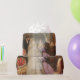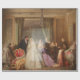 This design features a painting by the English painter, of the Victorian era, George Elgar Hicks (1824–1914). It shows a wife moving into her new husbands grand house after an elegant wedding ceremony. The bride is wearing a long white dress in a traditional style. The bridegroom is wearing a traditional morning suit and tie, and he has his hand placed on a stylish red chair that looks like a throne, gesturing for his wife to be seated. There are many family members celebrating with the husband and wife, including younger children and elder relatives. Everyone is wearing their finest clothes for this special occasion. It is a joyous moment for the happy couple, one that they will cherish for the rest of their lives. The original artwork was painted in 1862.