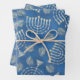 Set of three 19” x 29” semi-gloss sheets of wrapping paper with an image of silver dreidels and lighted silver menorahs on blue. See matching confetti, label and square sticker. See the entire Hanukkah Wrapping Paper collection under the HOME category in the HOLIDAYS section.