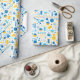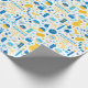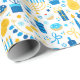Add some holiday colour and sparkle with this fun Chanukah wrapping paper design. Appropriate for children or adults, corporate or family gift wrap needs. There are coordinating gift bags, tissue paper, and ribbon for a complete Chanukah look, or you can mix and match with our other Chanukah wrapping paper patterns. This design is in blue, white and gold featuring Chanukah gifts, menorahs, streamers, and more.