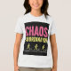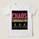 The "Chaos Coordinator" design is a bold and playful graphic that combines vibrant colours, dynamic typography, and simple iconography to convey a sense of controlled chaos. The design features the words "CHAOS COORDINATOR" in striking pink and yellow text against a black background, emphasising contrast and energy. Below the text, three stick-figure runners add movement and humour, symbolising the idea of managing disorder with purpose and enthusiasm.